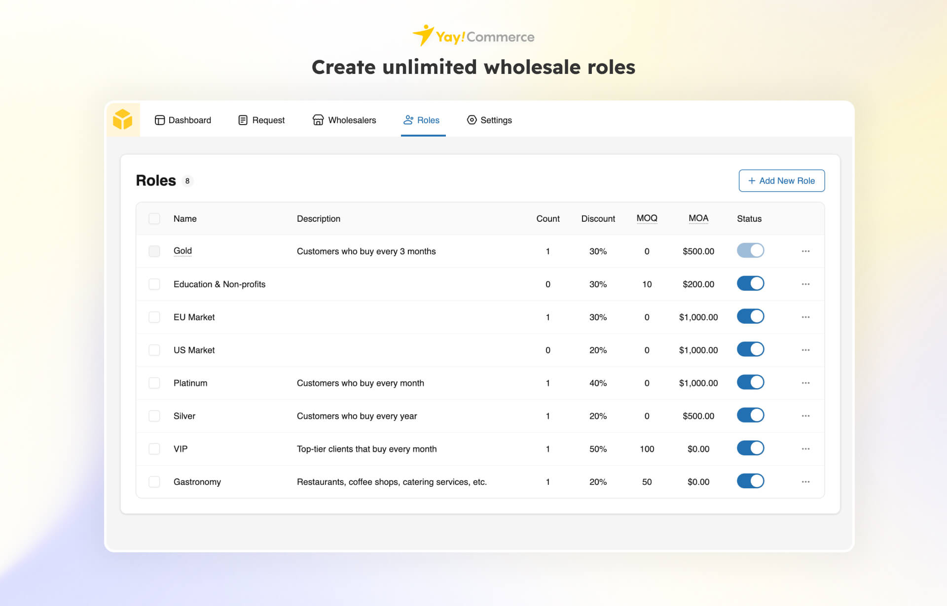 No, you can create unlimited wholesale roles to match your business needs.